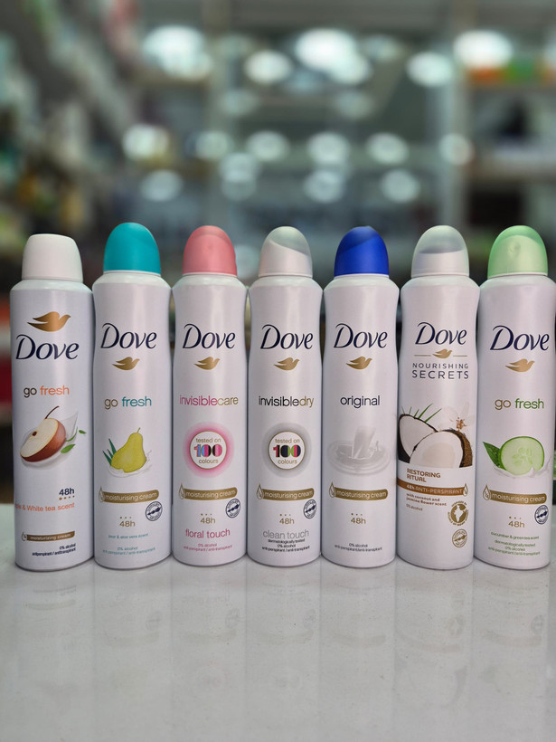 در صفحهی رسمی Dove گفته شده که اسپریهای این برند «دئودورانت اسپری بدن» هستند که رایحه خوب و محافظت در برابر بو را ارائه میدهند.