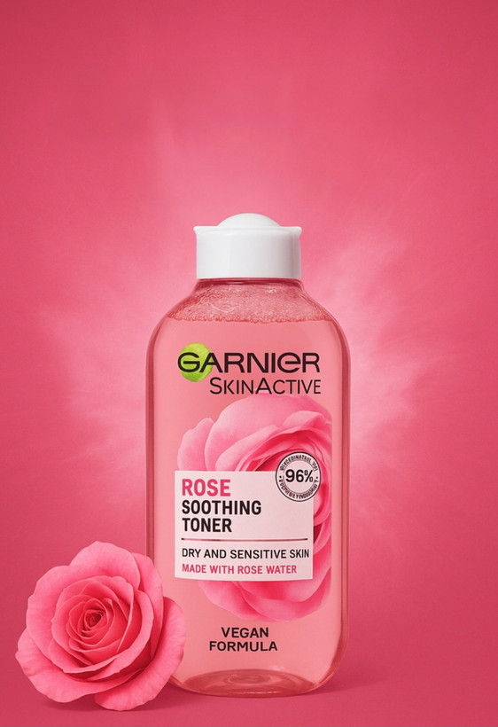 تونر گل رز گارنیر با فرمولاسیونی غنی از آب گل رز طبیعی و ترکیبات گیاهی ۹۶ طبیعی پوست خشک و حساس را به نرمی